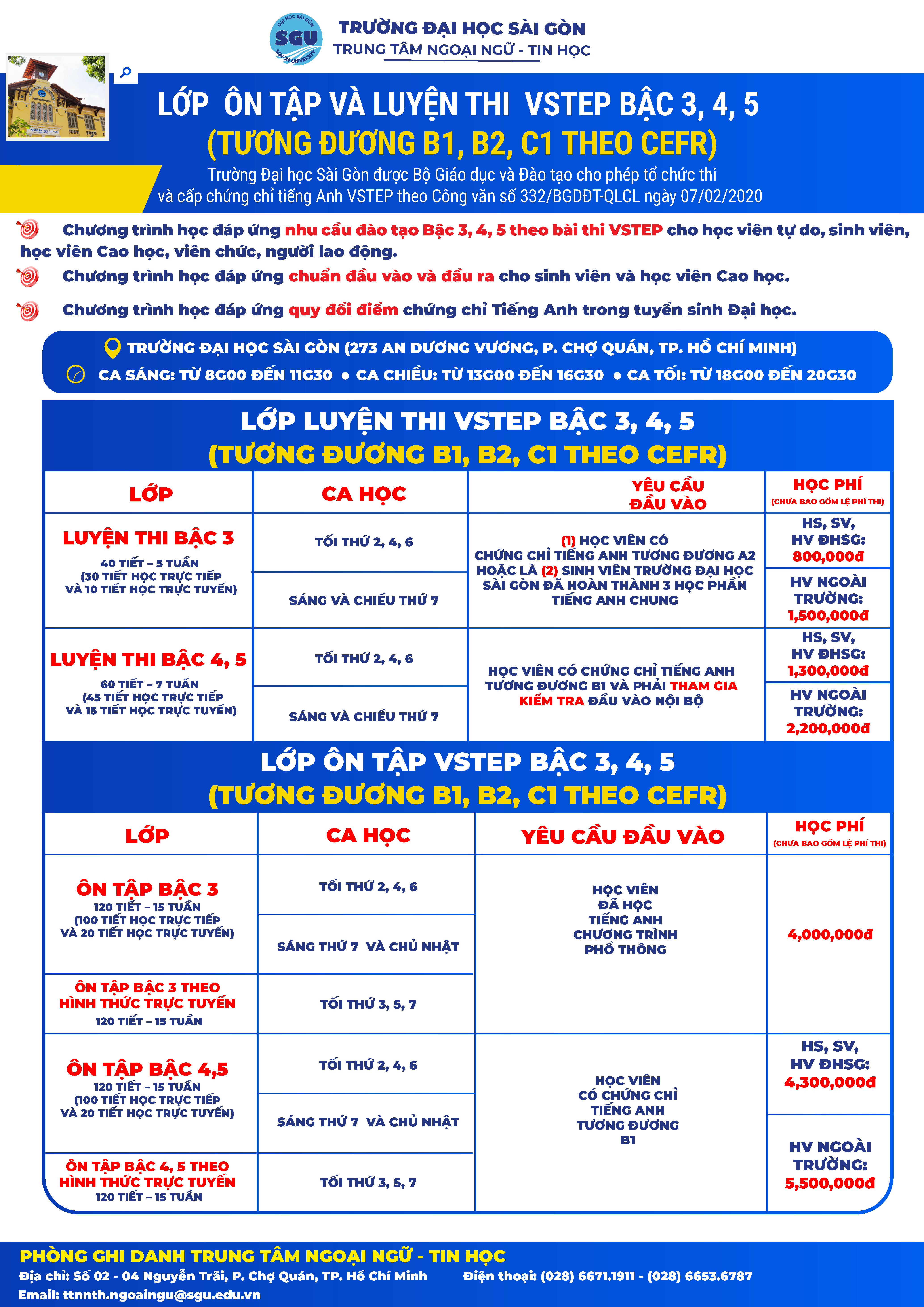CHƯƠNG TRÌNH HỌC VSTEP BẬC 3, 4, 5